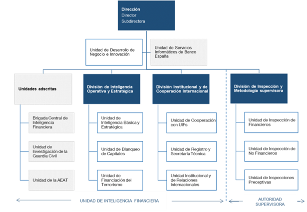 El Sepblac es un órgano inter-agencia en el que, bajo una dirección única, desempeñan sus funciones profesionales procedentes de 5 instituciones del Estado (Ministerio de Economía, Banco de España, Agencia Estatal de Administración Tributaria, Policía Nacional y Guardia Civil).